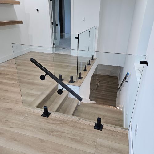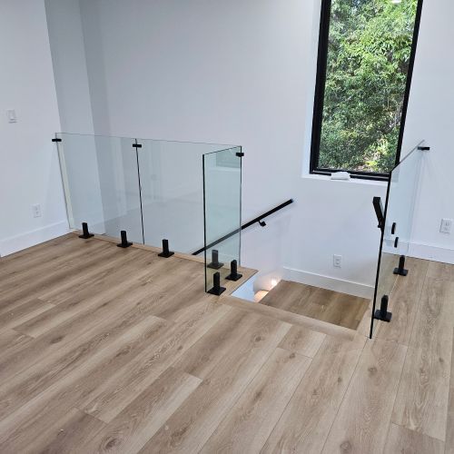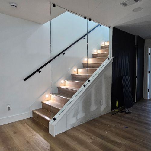 We offer frameless glass railings, glass and stainless steel combinations, and custom cut glass designs to fit your space perfectly. Our glass stair railings not only provide a modern look but also enhance the flow of natural light, creating a brighter and more open environment.